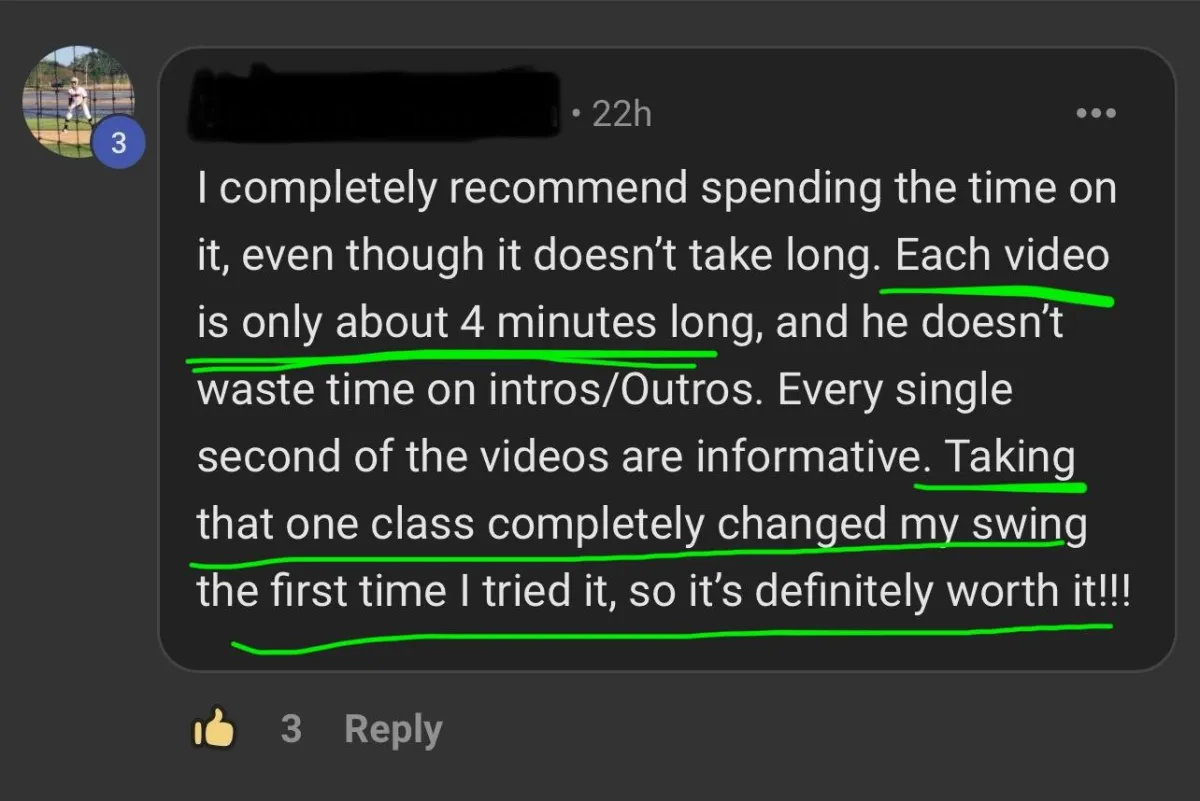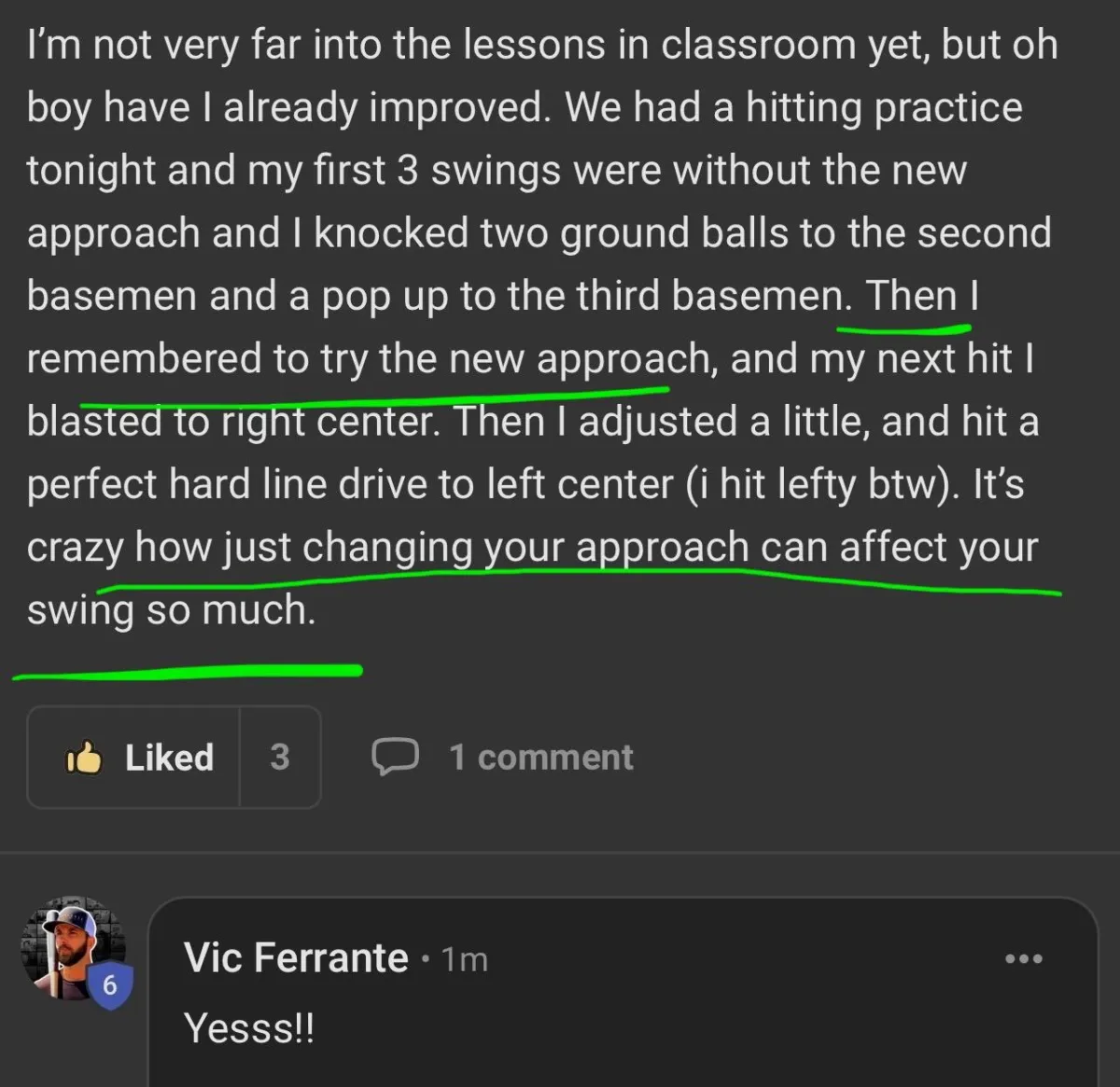 Absolutely! The program focuses on mental, mechanics, and fundamentals, so it fits easily into your in-season routine. You can use me for in-game video analysis and feedback after each game to keep improving. Don't wait—being the best version of yourself at the plate is a continuous journey, and consistency is key to a great season (and career).